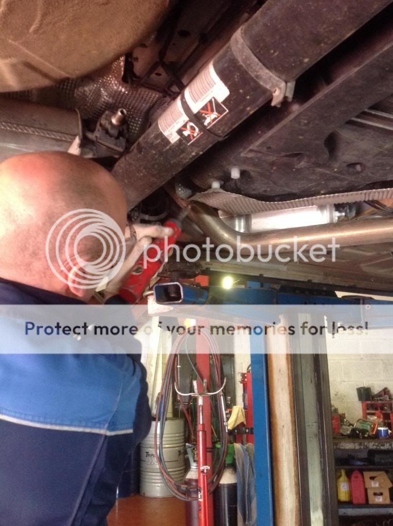 New back box is fit and connected. By mounting the clamps at 90 degrees it gives about 30mm clearance from the rear cross member. Dan the cross member doesn't actually go up and down it pivots as it contains the anti roll bar so should not contact the clamp.